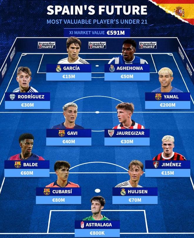 亚马尔(巴塞罗那)2亿欧元、豪雷吉萨尔(毕尔巴鄂竞技)3000万欧元、加维(巴塞罗那)4000万欧元、赫苏斯-罗德里格斯(科莫)3000万欧元